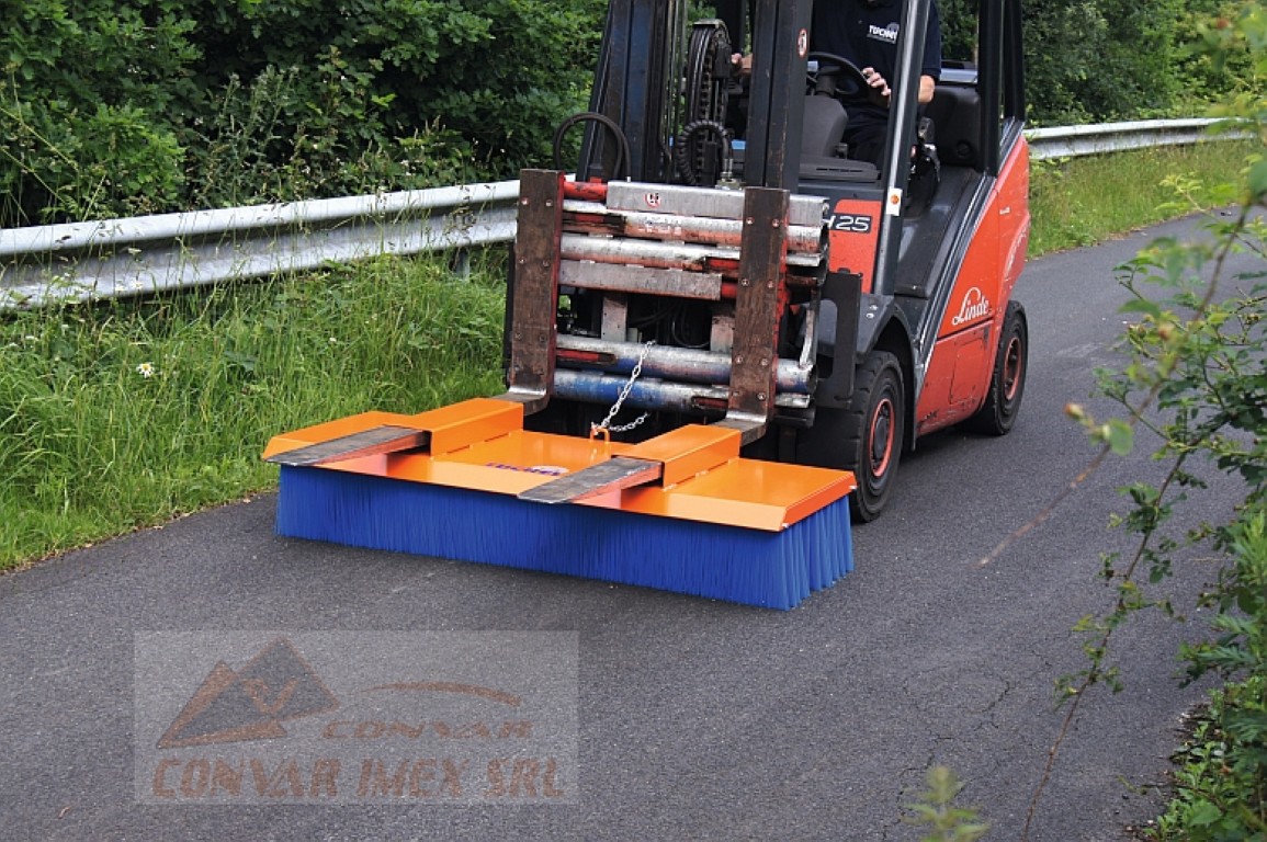 By means of the vertical flotation system, the equipment will “copy” the road by acting independently of the load-bearing machine that will not press the equipment and, implicitly, the support wheels. Otherwise the brush will be pressed on the ground, the wheels will be forced and will wear out or damage faster.